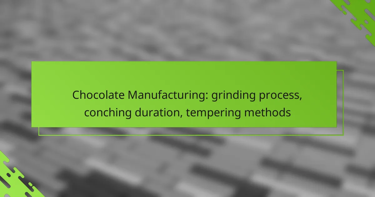 Chocolate manufacturing is a meticulous process that begins with the grinding of cocoa beans to create a fine chocolate liquor, where roasting and particle size reduction play crucial roles in flavor development. Following this, conching enhances the chocolate’s texture and taste through continuous mixing and aeration, significantly impacting its overall quality. Finally, tempering methods are employed to ensure a smooth texture and glossy finish, utilizing techniques such as tabling, seeding, and machine tempering, each offering unique benefits.