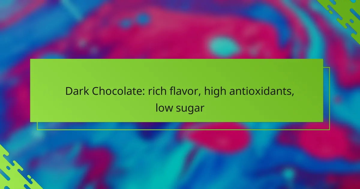 Dark chocolate offers several health benefits, primarily due to its rich antioxidant content, low sugar levels, and positive effects on heart health and mood. Incorporating dark chocolate into a balanced diet can enhance overall well-being.
