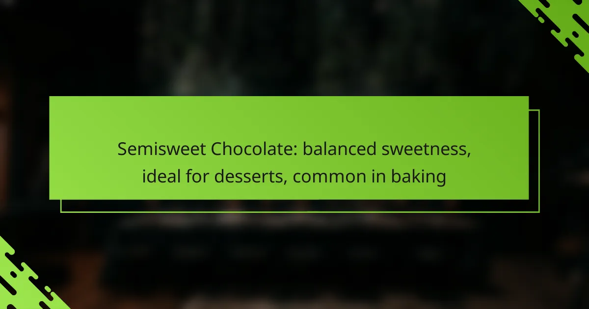 Semisweet chocolate is a versatile ingredient commonly used in various desserts due to its balanced sweetness. It enhances flavors in recipes like brownies, cookies, and cakes, making it a staple in baking.