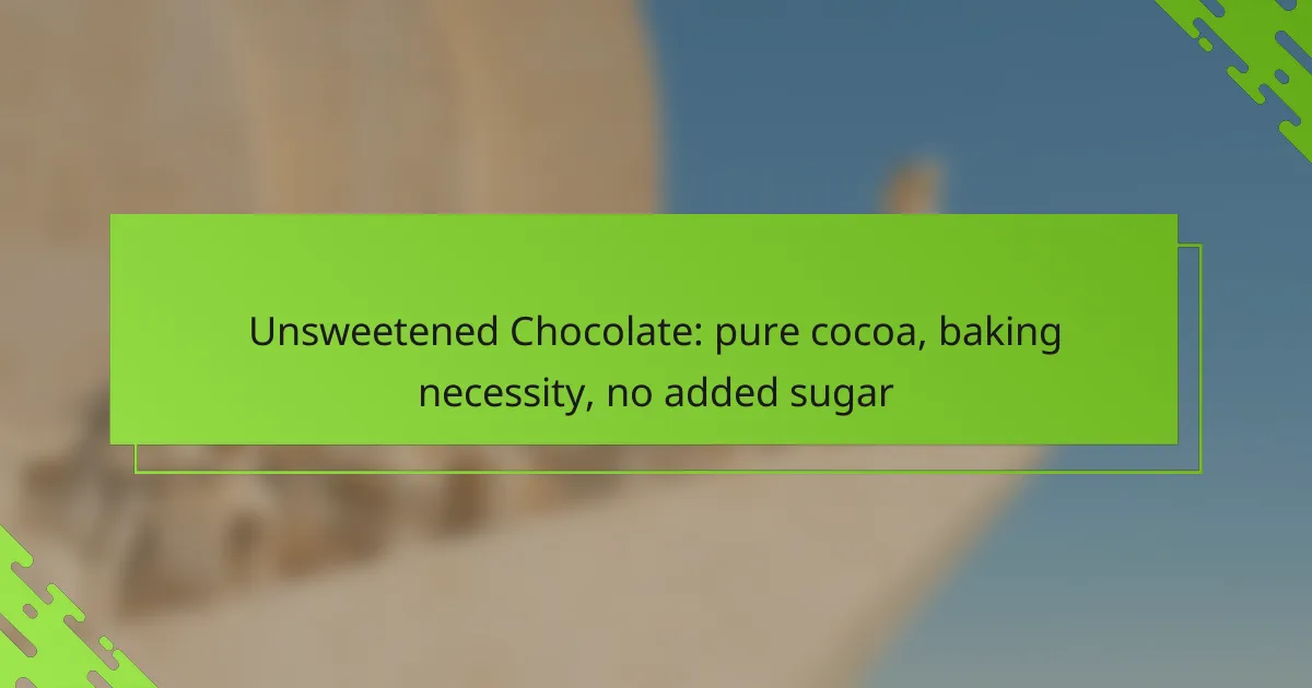 Unsweetened chocolate is a versatile ingredient in baking, providing a rich cocoa flavor without added sugar. It can be used in various recipes, but adjustments may be necessary to balance sweetness and fat content.